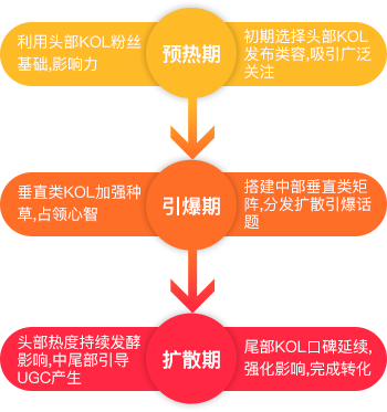搭建金字塔型KOL矩陣,通過(guò)互動(dòng)話題和不同量級(jí)KOL的排兵布陣,實(shí)現(xiàn)全面擴(kuò)散甚至病毒式傳播。階段式持續(xù)推動(dòng)營(yíng)銷(xiāo)信息擴(kuò)散;